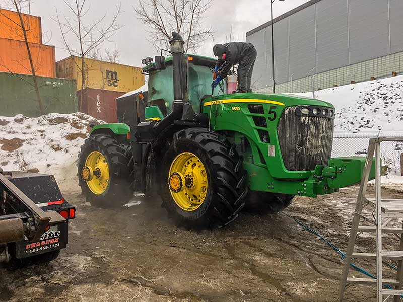 Nous recevons beaucoup de matériel couvert de rouille comme celui-ci. Nous éliminons la saleté, la rouille et la vieille peinture au lavage à la pression, puis nous appliquons une couche de peinture fraîche; votre équipement retrouve son aspect neuf.